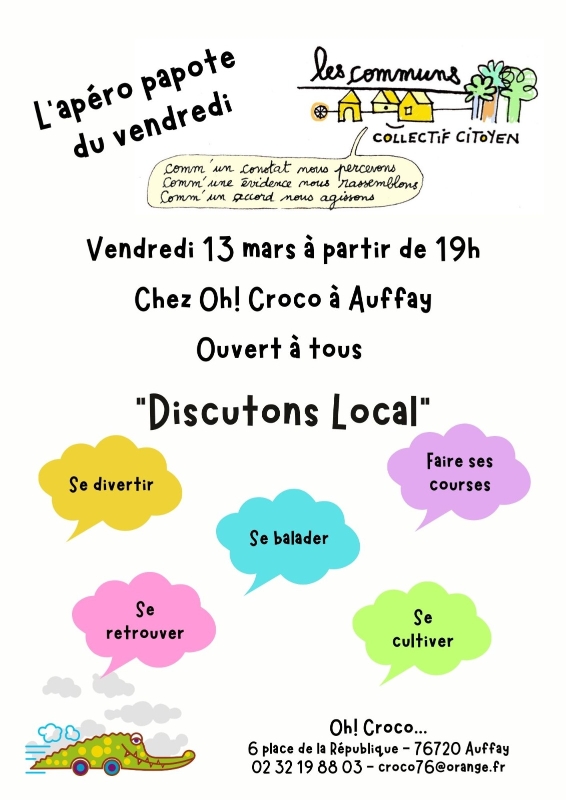 - le 13 mars : "Parlons local!", moment d'échange et de partage sur les initiatives locales.