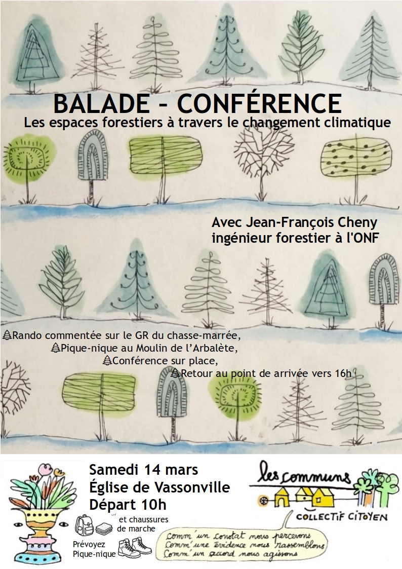Le changement climatique n'est plus un horizon lointain : on peut le lire dans l'écorce des arbres, dans la profondeur des sols, on peut percevoir son impact sur nos paysages.Jean-François, ingénieur forestier va nous permettre d'aborder comment on a déjà commencé à s'adapter sur le terrain, comment les arbres réagissent à la hausse des températures et aux sécheresses répétées, quelles résiliences on peut observer.Que vous soyez passionnés d'écologie ou simple promeneur curieux des enjeux environnementaux, cette balade est l'occasion d'en apprendre plus sur la façon de gérer la forêt aujourd'hui, et sur ce qui mis en place pour anticiper le climat de 2100.Infos pratiques :Rdv eglise de vassonvilleSamedi 14 mars, départ 10hBalade le long du GR chasse-marrée, puis un casse croûte le midi au Moulin de l’Arbalète suivi d'une petite conférence sur place, puis retour au point de arrivée vers 16hIntervenant : Jean-François Cheny, ingénieur forestier à l'ONFPrévoyez pique-nique et chaussures de marche.- Présentation de l'association AMIE76 pour la protection des mineurs isolés.